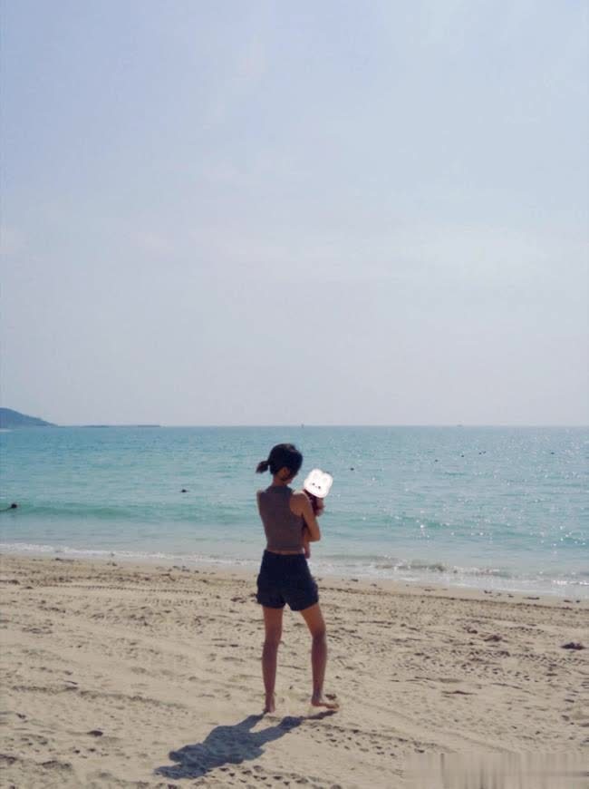 卢靖姗带一双儿女海边度假!3岁女儿穿泳衣可爱,3个多月儿子好萌,看着韩庚和卢靖姗,还有戚薇和李承铉,以及董力和阿诺,都已经儿女双全了,才体会到当时章子怡录妻旅的时候为啥那么想要生二胎了。